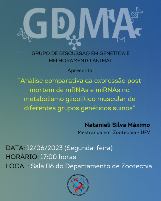 Convidamos a todos para a nossa reunião na próxima segunda, 12/06, às 17h na sala 06 do Departamento de Zootecnia da UFV, onde teremos apresentação da mestranda em Zootecnia Natanieli Silva Máximo.